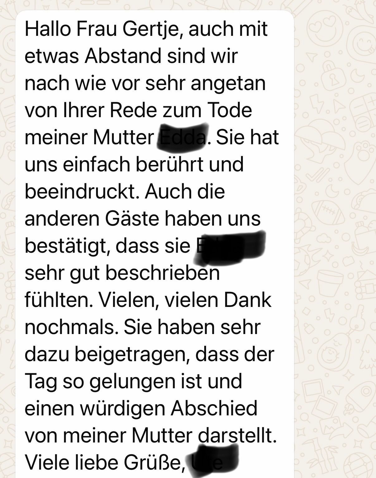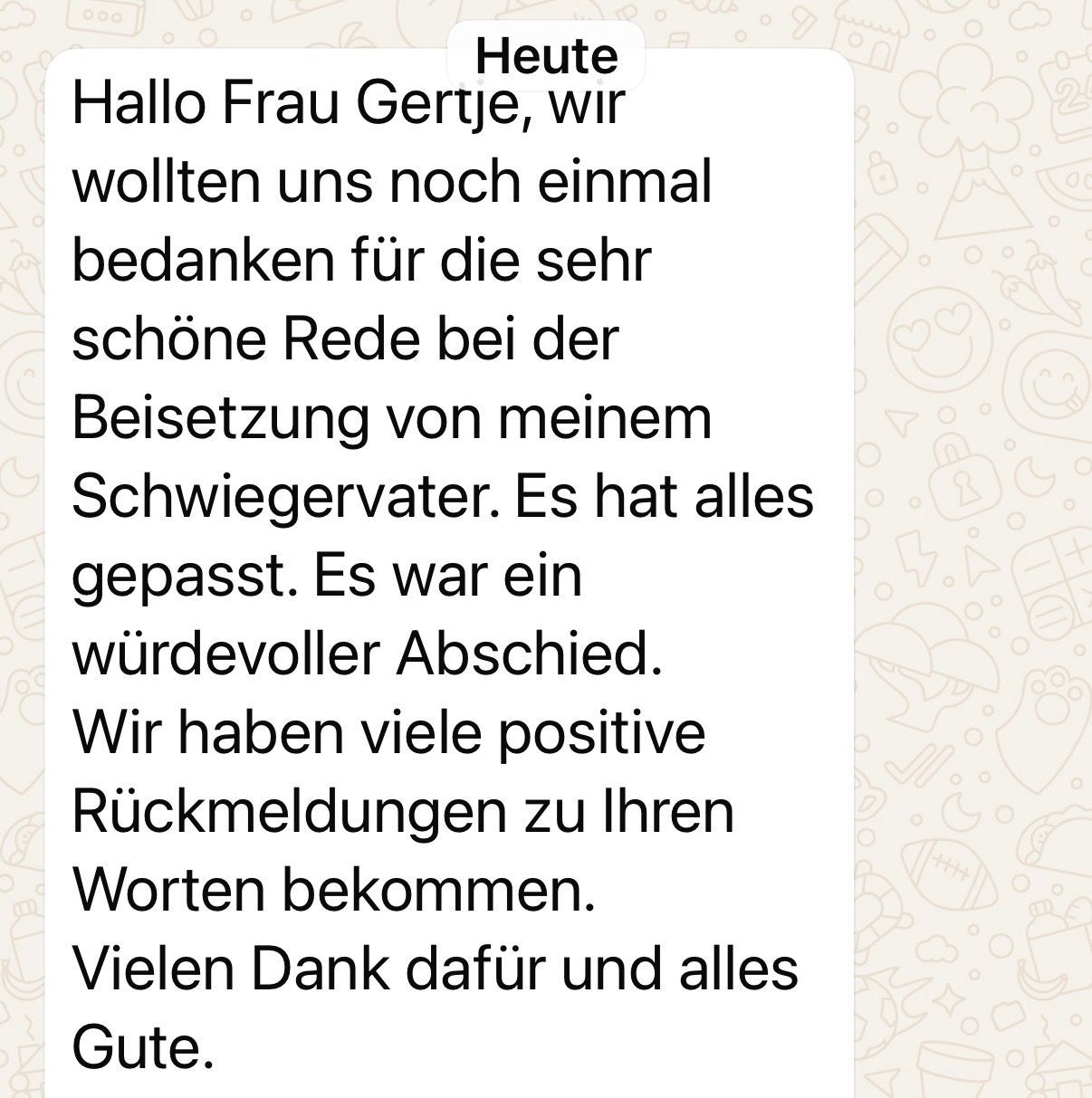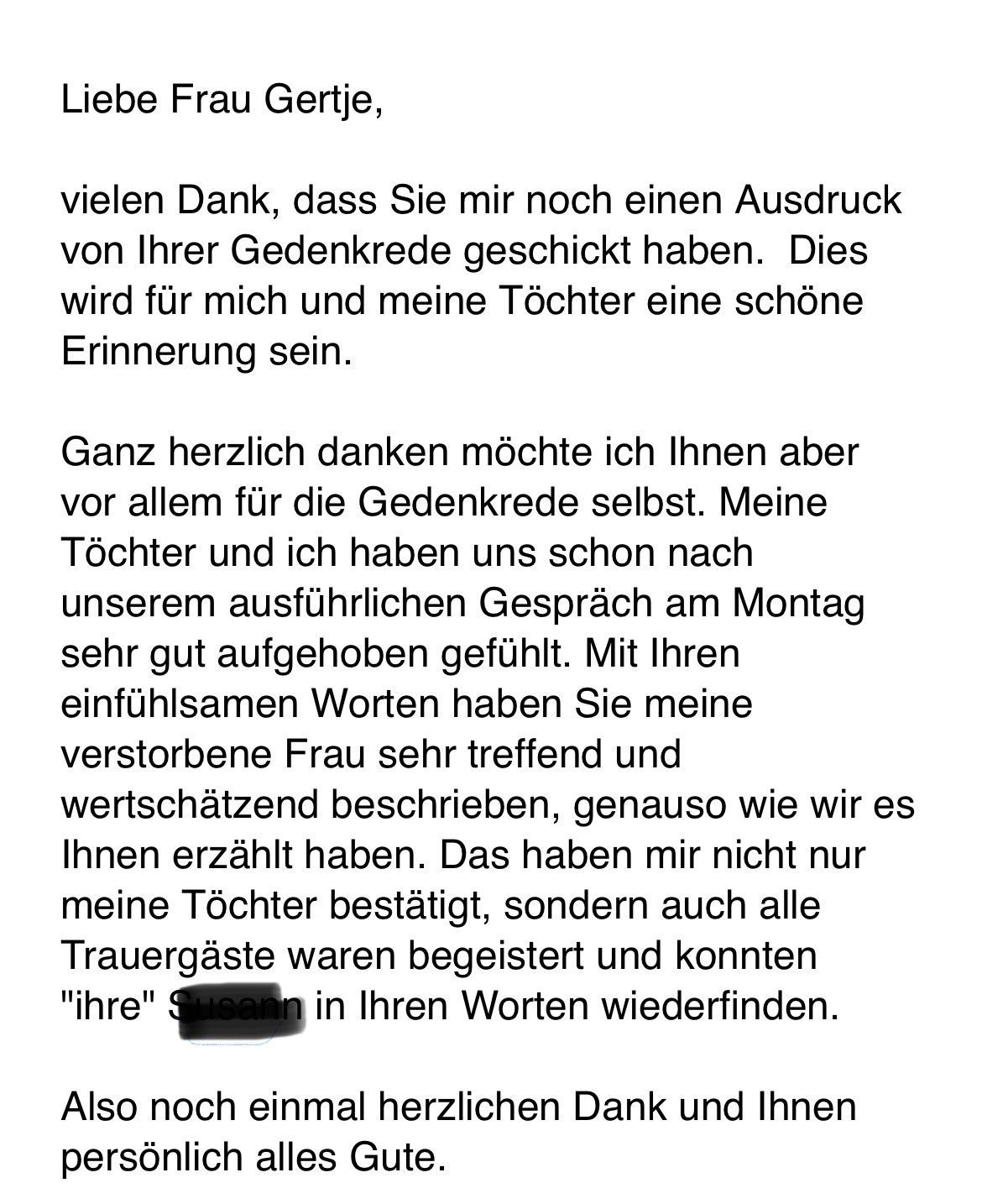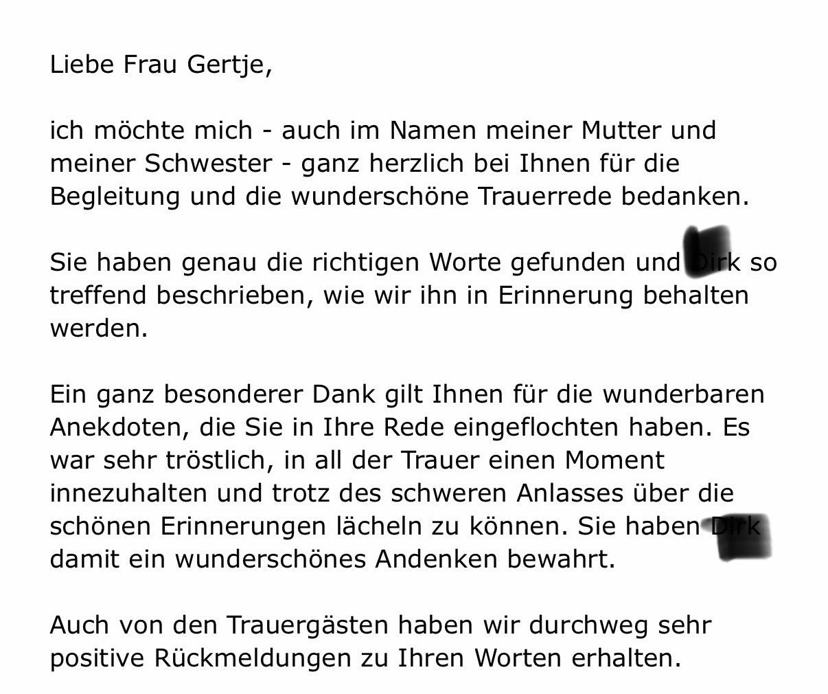 "Liebe Frau Gertje,